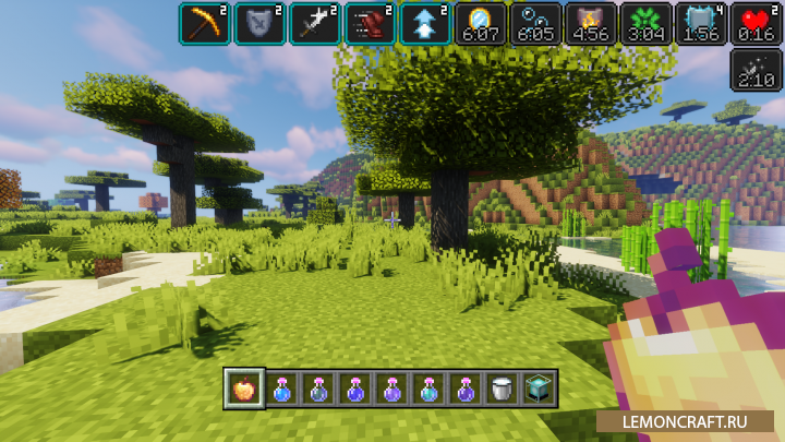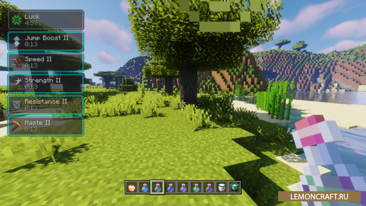 Мод на стильные эффекты Stylish Effects предназначен для полного преображения информационных блоков информирующих об эффектах. Теперь у вас появился выбор среди, как больших табличек, так и маленьких, которые вместят на своей площади только иконки. Данная система вывода совместима с JEI и имеет очень тонкие настройки, что позволит вам подобрать именно то что нужно.